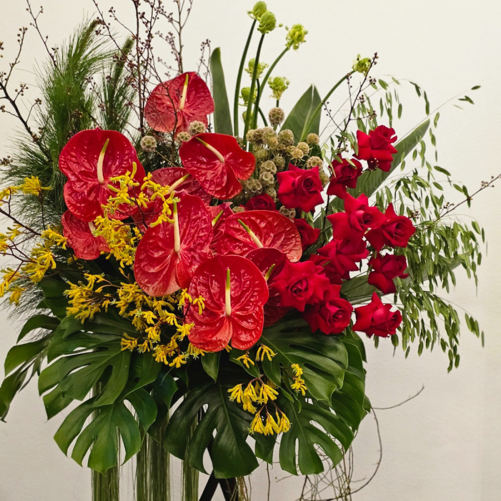 A lively and elegant congratulation flower stand is perfect as a gift for new store opening, wishing them a thriving and prosperous business.