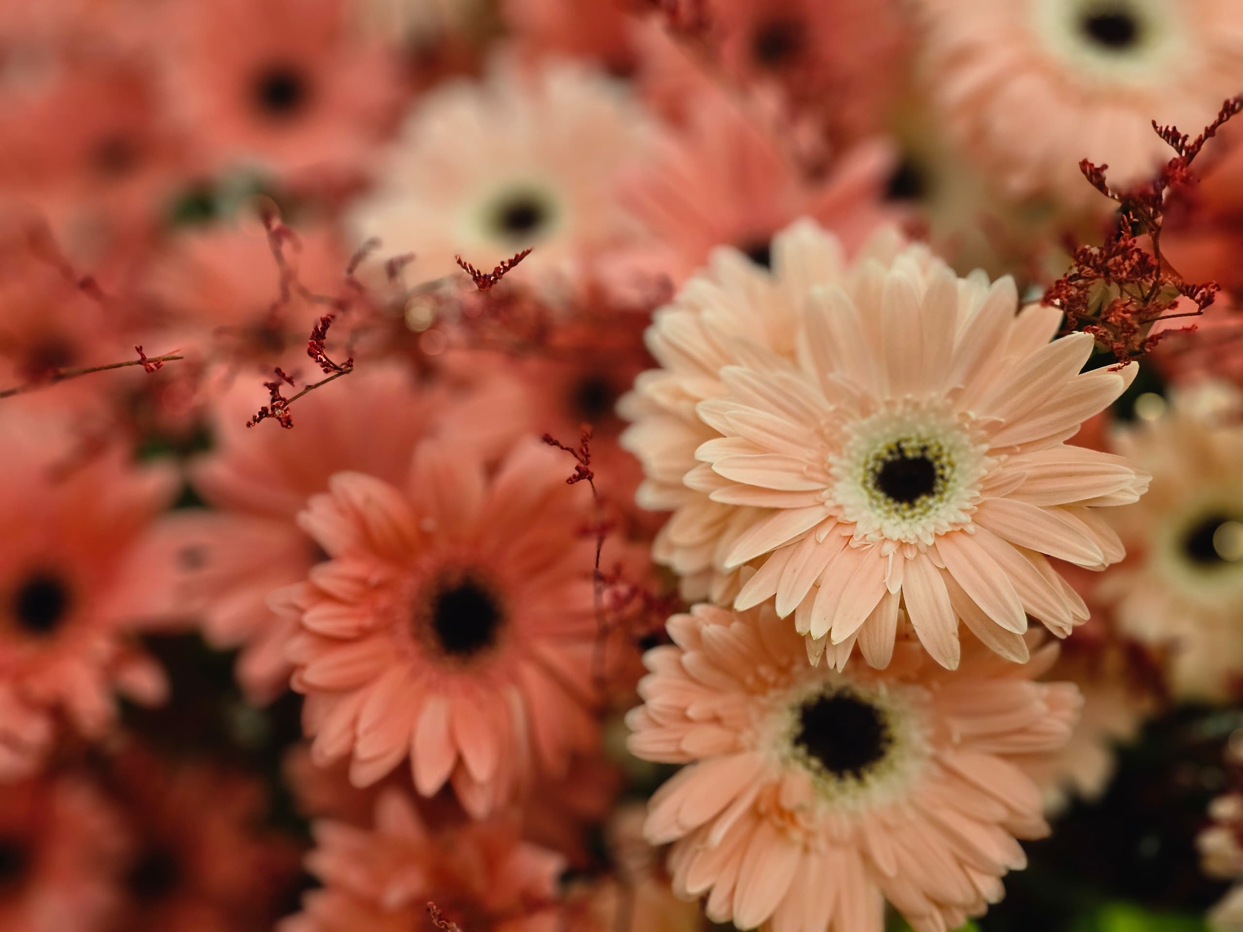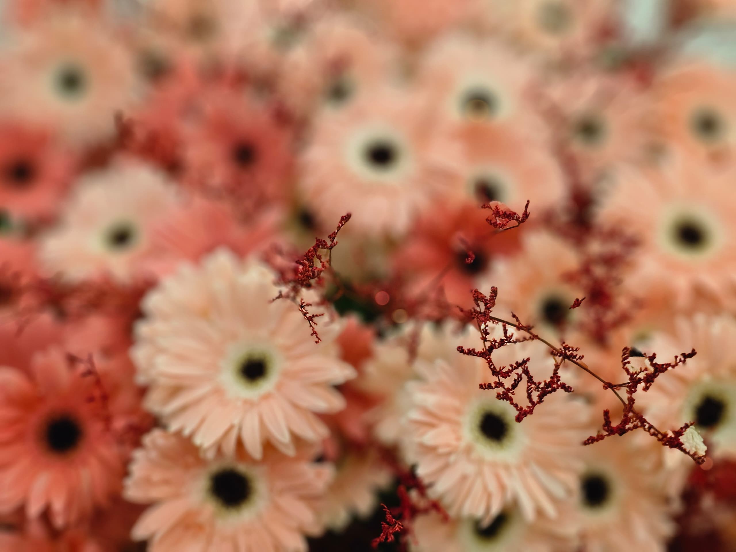 Flowers in full bloom, its petals unfurling gracefully to reveal soft, pastel shades. The colors blend harmoniously, with gentle hues of blush pink, creating a sense of serenity and warmth. The flower’s center gleams with a touch of golden sunlight, as if kissed by the sun, inviting the viewer into a world of peace and beauty. The air around it seems to hum with sweetness, as the flower stands as a symbol of hope and new beginnings.
