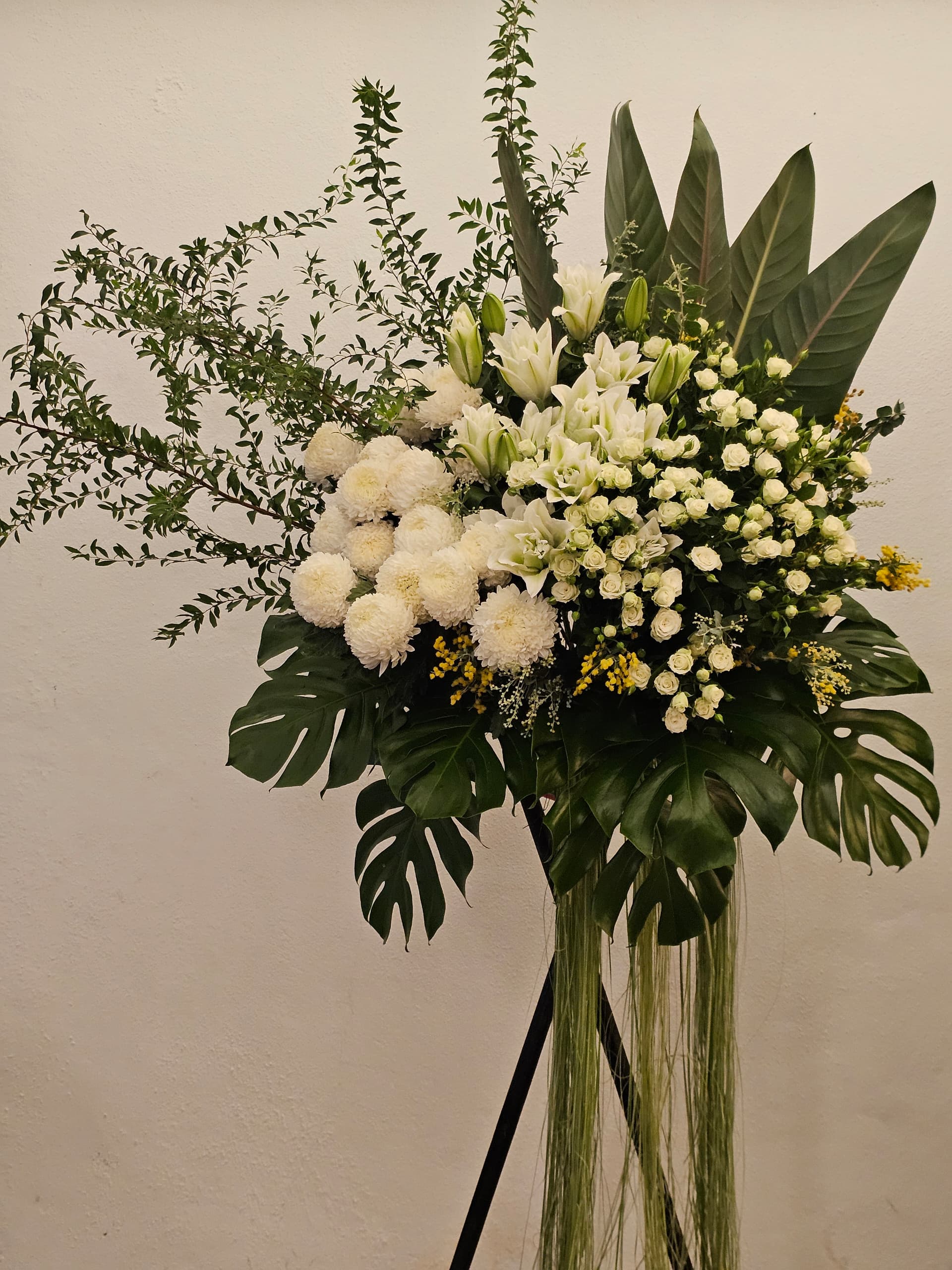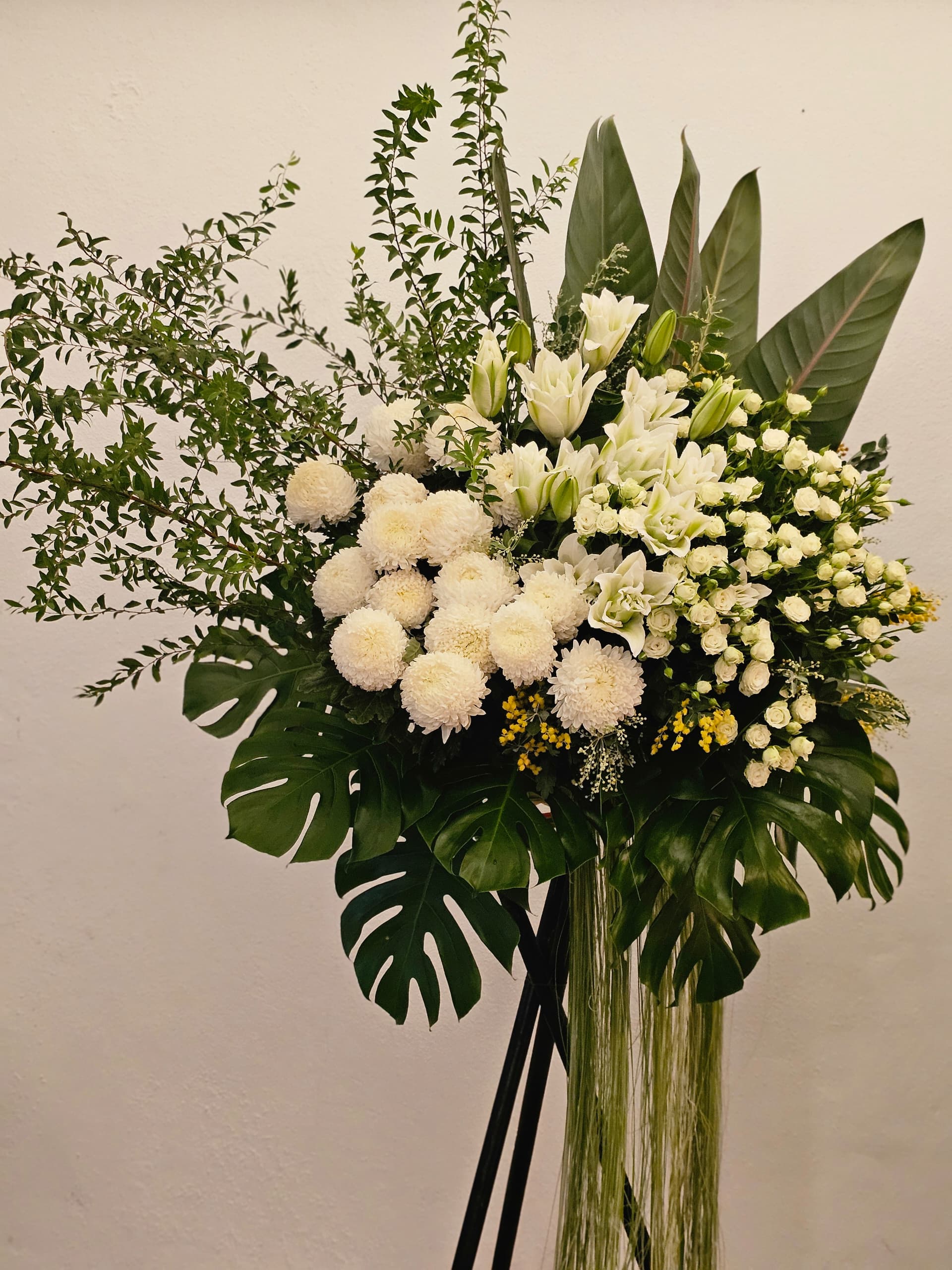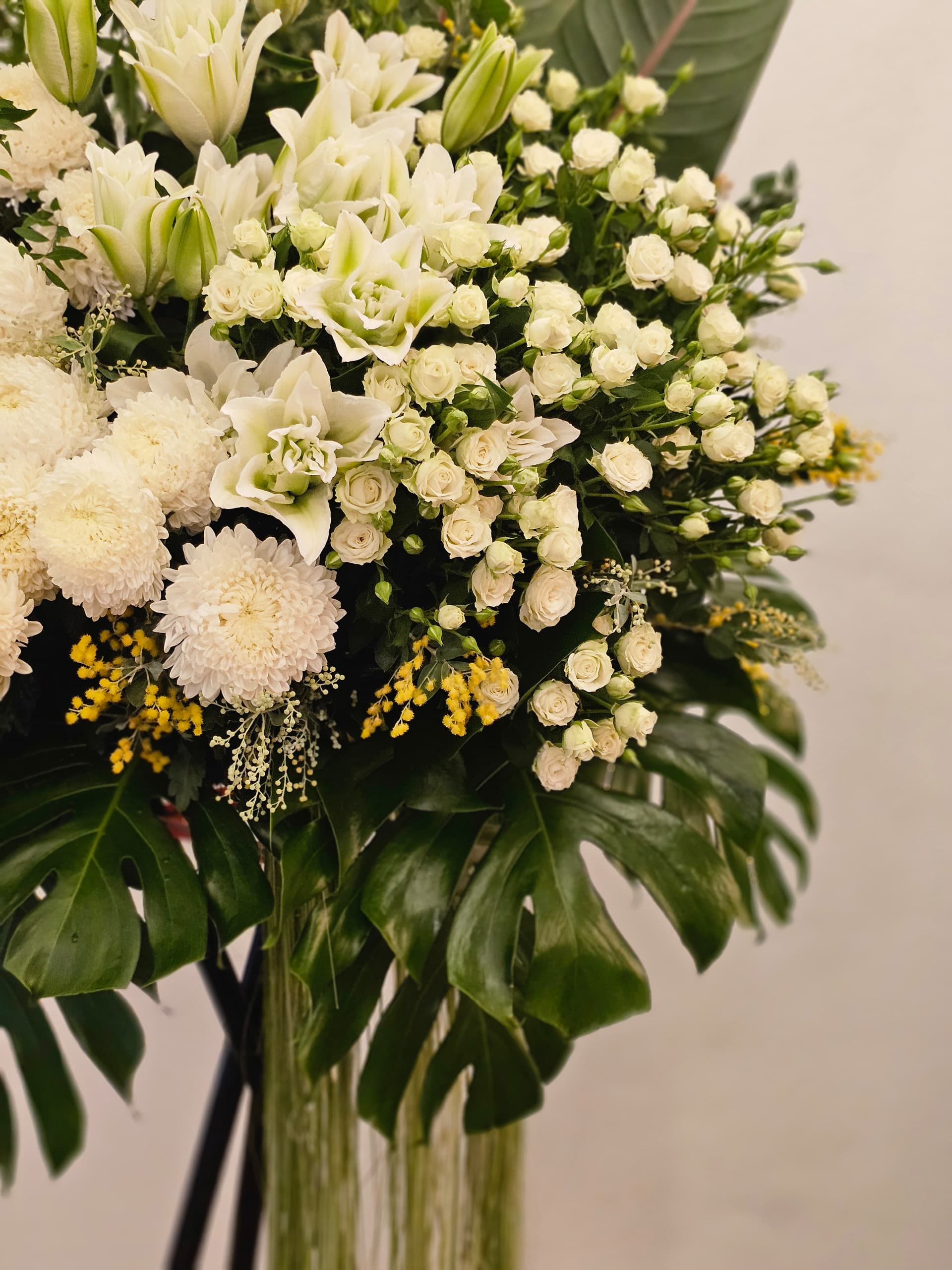 Our signature floral stand without wrapping paper is a lovely way to showcase flowers while being mindful of the environment.