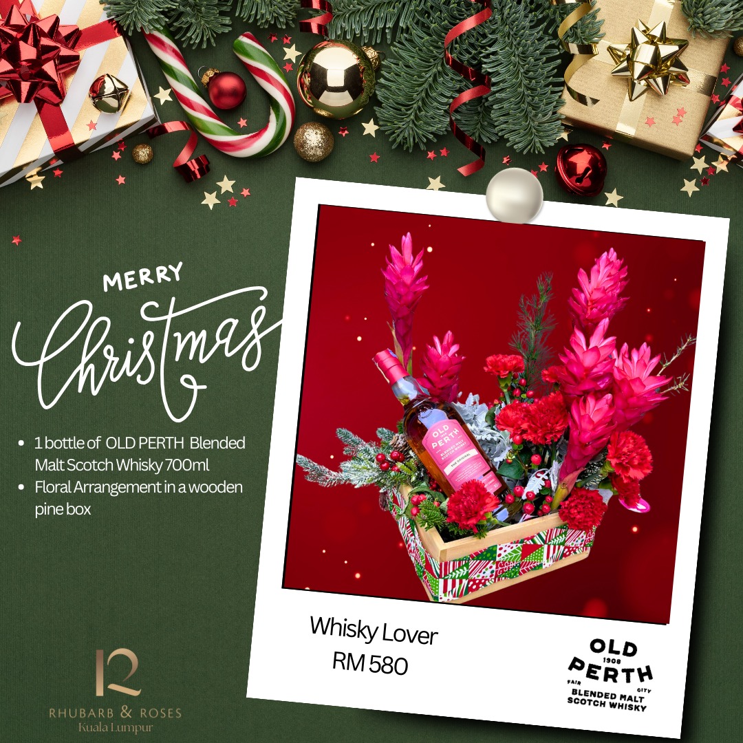 🥃 A luxurious floral arrangement paired with Old Perth Blended Malt Scotch Whisky—crafted for those who appreciate the finer things in life.