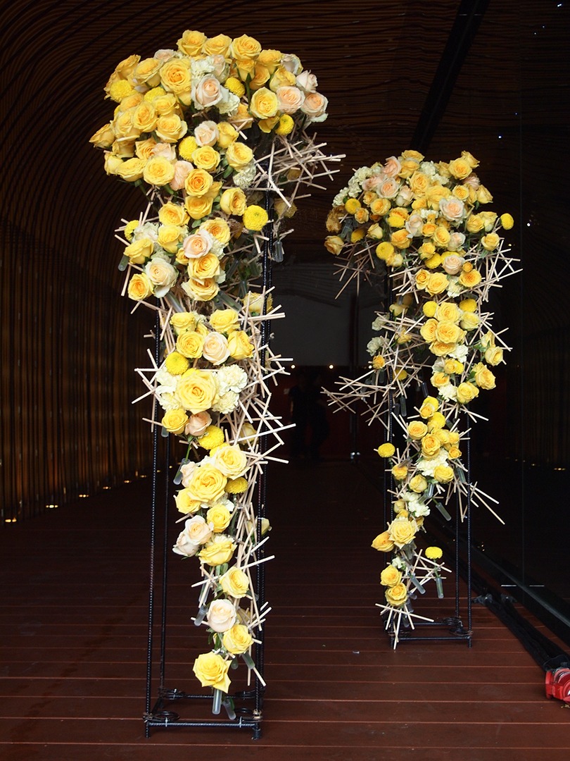 #A perfect combination of yellow roses with bamboo stick.
